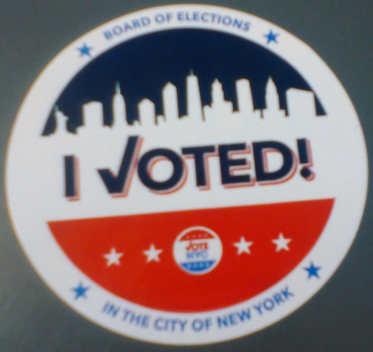 Ed: It’s now 7:21 AM. Just got home. No lines at a peaceful voting site in the basement of the Church of Saints Simon and Jude, in Gravesend, Brooklyn. Decided to join the ranks of those voting for the insane!