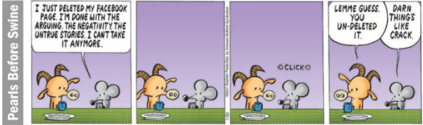 You try to quit, and just when you thought you were out (or canceled), they pull you back in! H/T to Stephan Pastis of “Pearls Before Swine“: