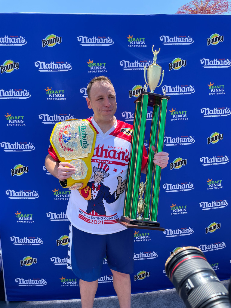 Joey Chestnut beat his own world record, by downing 76 hot dogs in the Nathan’s Hot Dog Eating Championship in Coney Island, Brooklyn, New York!