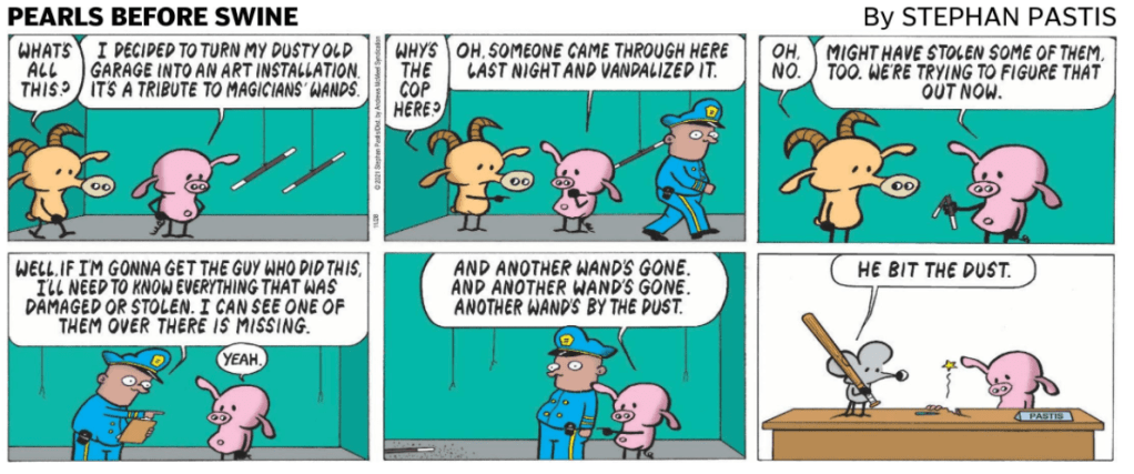 “Pearls Before Swine“, courtesy Stephan Pastis, New York Daily News