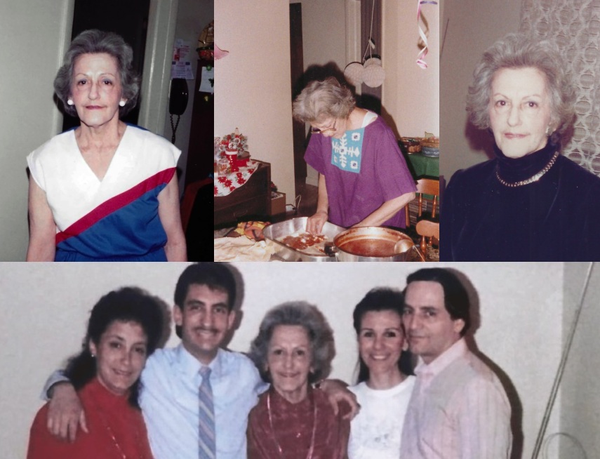 Mom remains very deep in our hearts and in the memories of all those who knew and loved her. She was a compassionate and loving soul. She had a hilarious sense of humor and an infectious laugh. And, boy, could she cook. Fortunately, we’ve still got her recipes for countless dishes, chief among them her singularly magnificent lasagna (and yes, that middle top photo is of Mom preparing Christmas lasagna for the family).